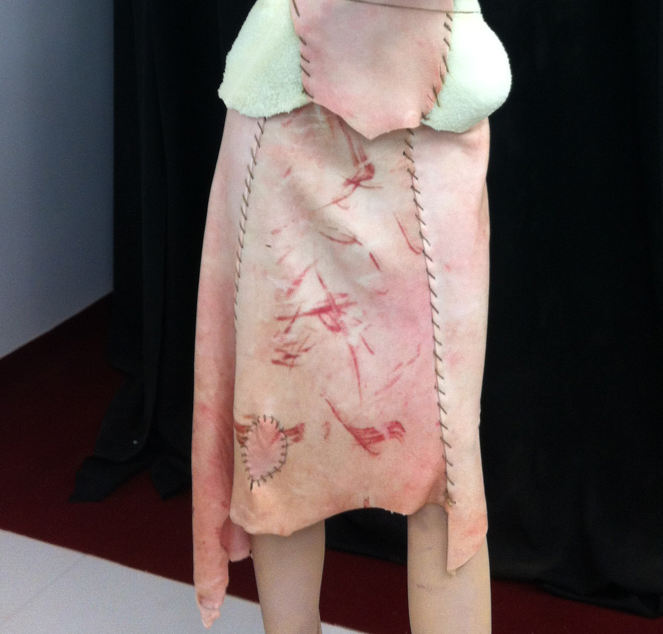 Barcelona's Fabra i Coats Art Factory opening was a huge party, with dozens of artists exhibiting and acting, and hundreds of visitors. An amazing experience and a rare installation for the occasion, I thought. There were hard moments as I worked with such raw, bloody, and smelly materials as animal offal: lamb and cow gut, raw pork skin, dead skinned giant rabbits, Argentinian pigeon wings... I had to install air conditioning behind the curtain as soon as I put the lamps on... In the installation, she, the virgin, is receiving advice on her pregnancy when the baby to be born is already as tall as an angel. A bit too late.