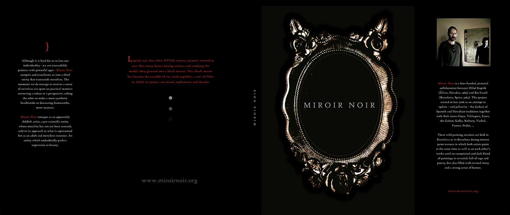 Catàleg de Miroir Noir dels primers cinc anys de col·laboració. És un llibret de 48 pàgines totalment bonic. El va dissenyar el Riot Über Alles, des de la factoria d'Eat Meat. Us poso aquí imatges de la preciosa portada enmirallada, i de la primera pàgina i del primer capítol. El llibre est`dividit, com la nostra feina, per capítols temàtics, o per sèries. Acaba amb unes bones fotos de les escultures i instal·lacions que vem fer el 2011 pel Konvet de Cal Rosal.