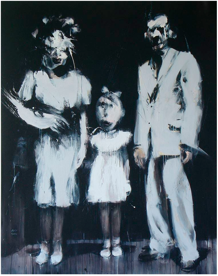 La sèrie es va anar pintant a partir de fotografies familiars antigues trobades a mercats de vell d'arreu d'Europa van ser el punt se partida per a les pintures resultants. Totes les fotos triades eren fotos de grup de persones dretes, aparentment abans o després d'un esdeveniment extraordinari, sense determinar, relacionat amb la religió, com primeres comunions, palmes, matrimonis o enterraments. Les emocions que hi percevíem eren l'expectativa i l'orgull, probablement fruit de la vestimenta de mudar i del mateix fet inusual de ser fotografiats.