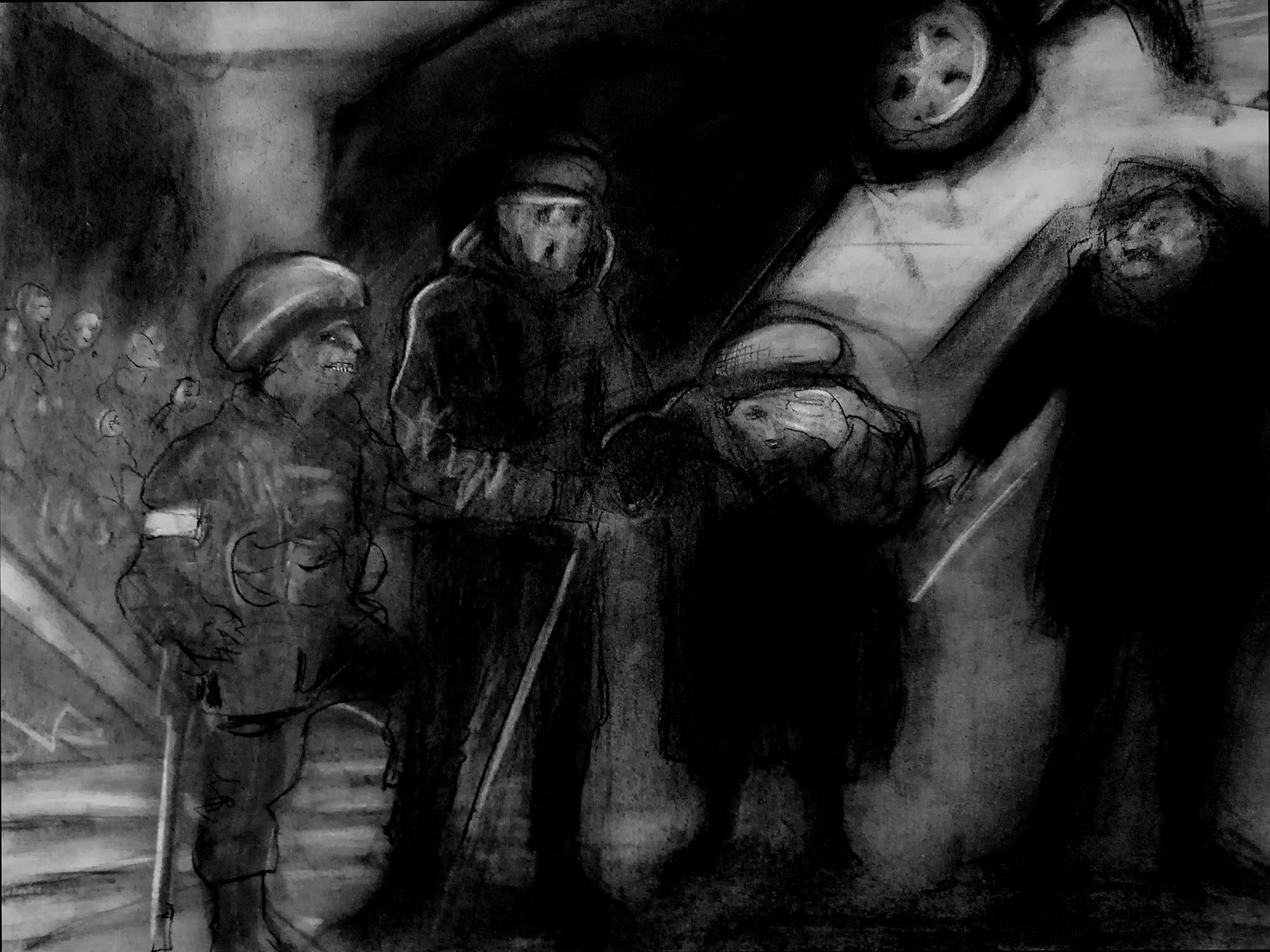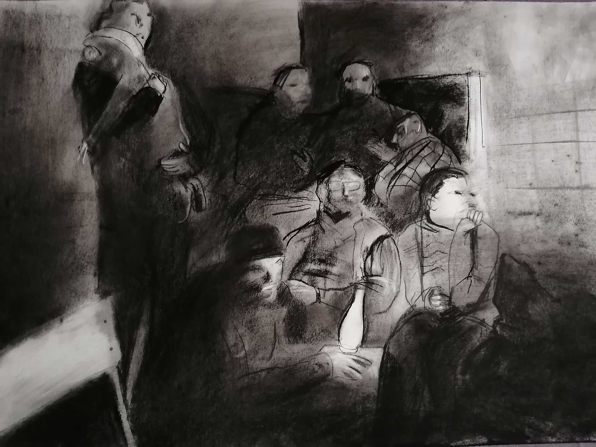 Vaig visitar Eslovàquia a finals de març del 2022, poc després de la declaració de la guerra d'Ukraïna. la sensació va ser d'un viatge èctic i monotemàtic, i, amb el Milos, al taller, els primers dies no vam poder fer res més que alguns dibuixos de refugiats, amb tota la ràbia i la tristesa.