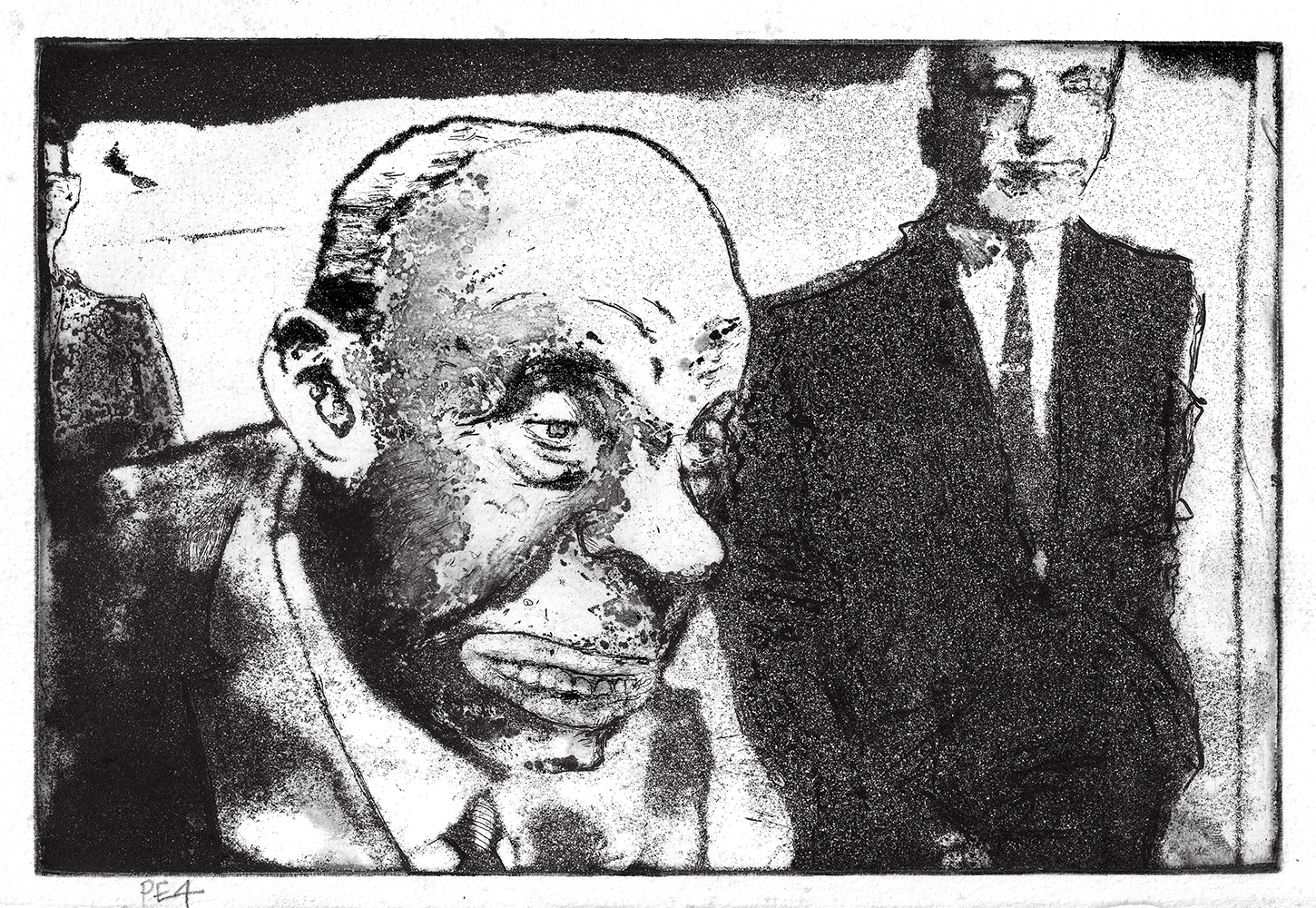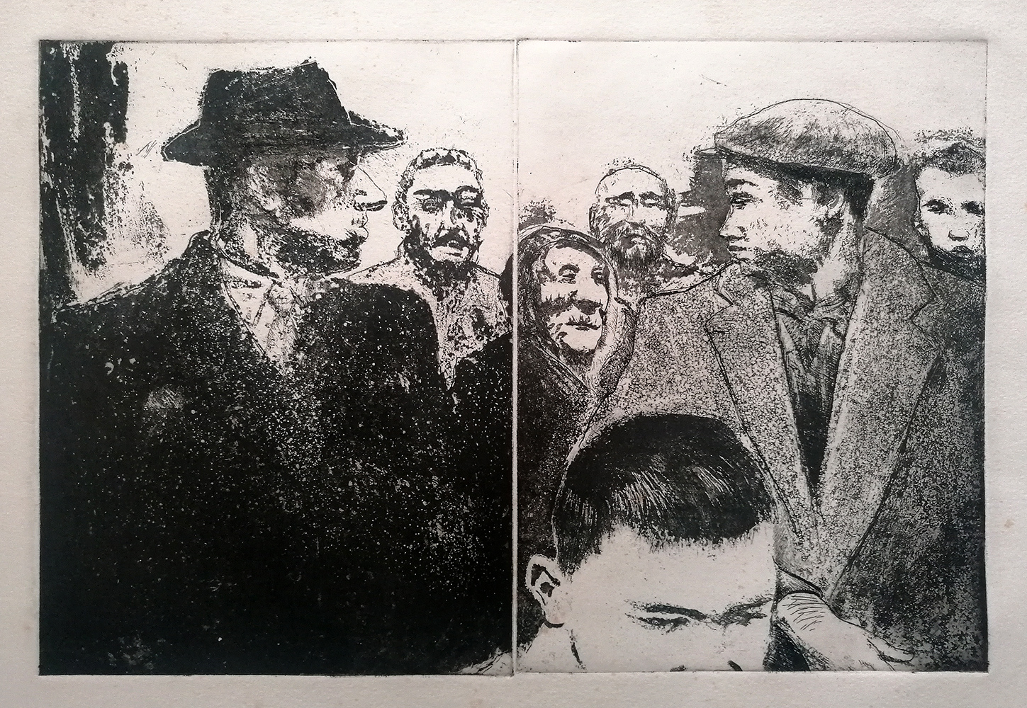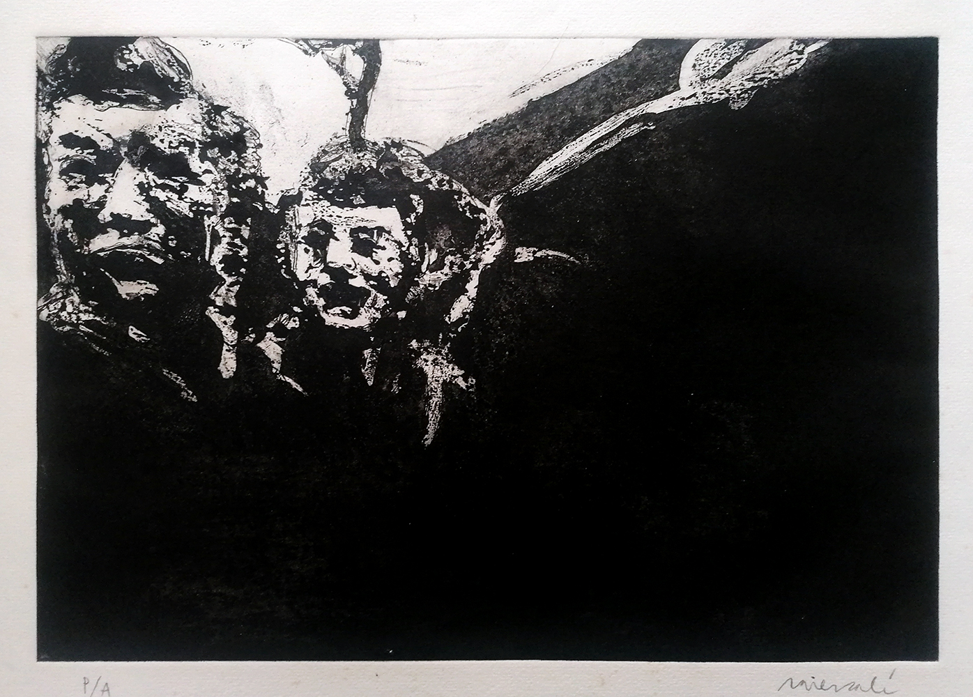 Quan ho vaig saber vaig estar fent uns quants dibuixos de fotos seves, sempre ha estat el meu fotògraf /artista de referència i de les seves fotos n'he tret de tot. I vaig recordar aquesta sèrie de gravats que vaig fer fa potser vint o vint-i-cinc anys, i que veient-la dubtava si tornar a estampar i fer-ne una petita edició, que no crec que m'hi emboliqui.